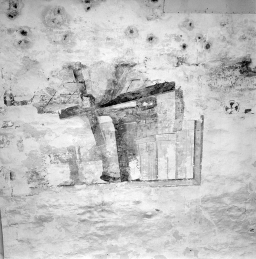 Peinture du mur nord de la nef, montée au calvaire.Immatriculation