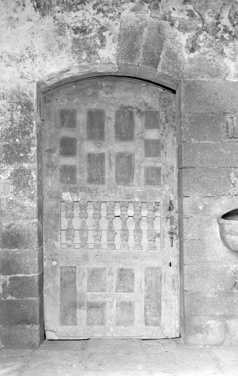 Porte sous le porche de la tour du clocher.Immatriculation