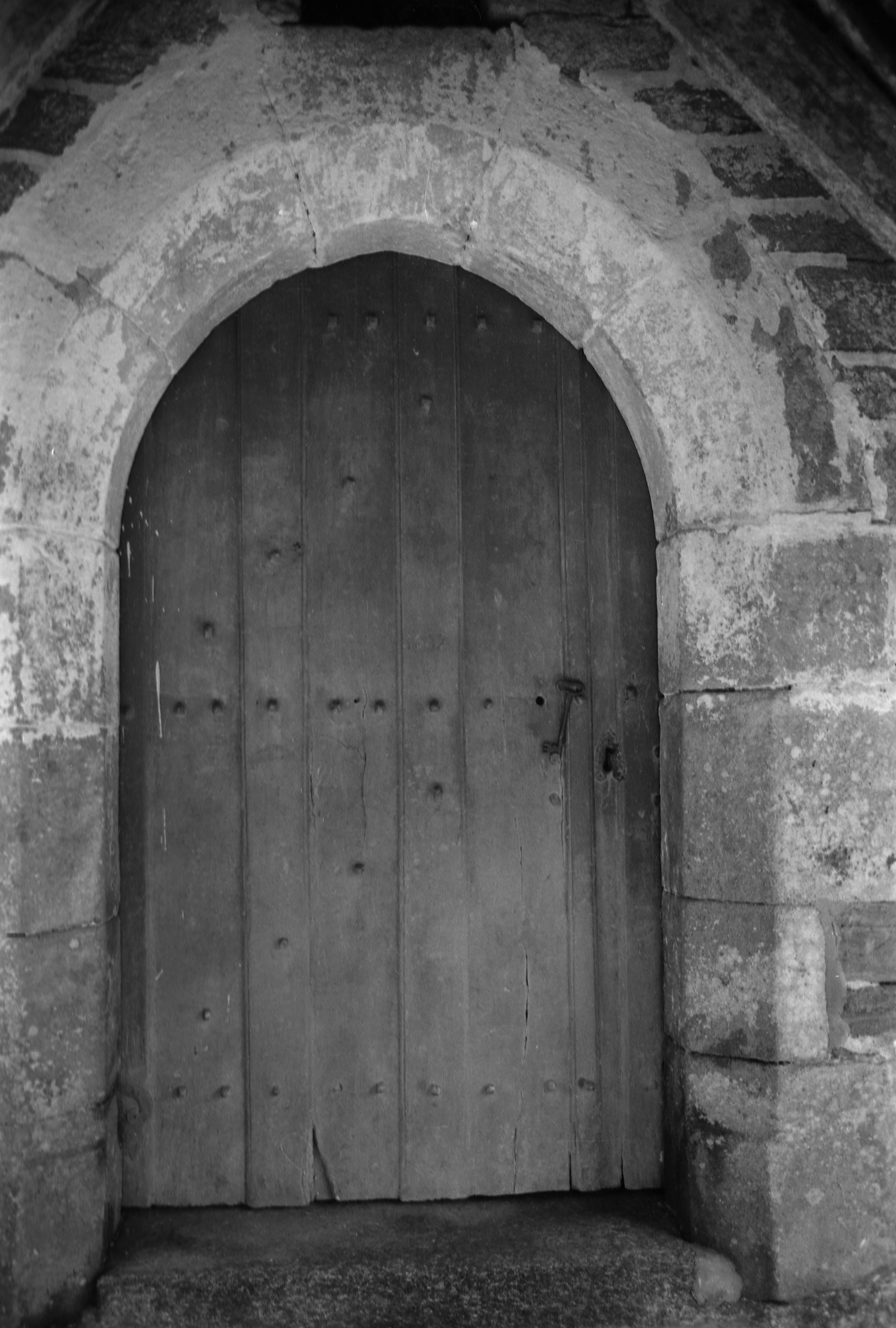 Façade sud, détail de la porte sous le porche.Immatriculation