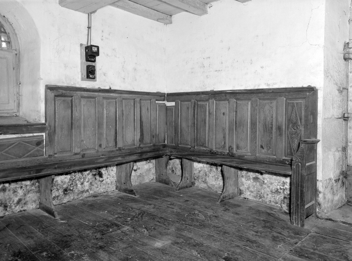 Lambris et bancs contre les murs sud et est de la sacristie.Immatriculation