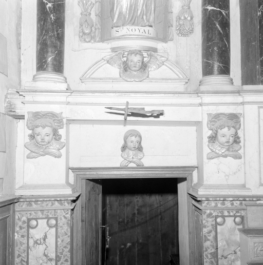 Maître-autel dans le choeur, encadrement et dessus de porte dans l'angle nord-est.Immatriculation