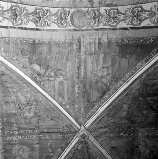 Voûte lambrissée peinte, croisée du transept, panneaux est, martyre.Immatriculation