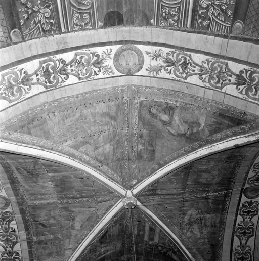 Voûte lambrissée peinte, croisée du transept, panneau ouest, martyres.Immatriculation