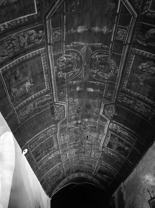 Voûte lambrissée peinte, nef, vue d'ensemble ouest-est.Immatriculation