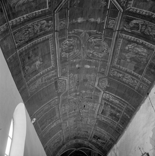 Voûte lambrissée peinte, nef, vue d'ensemble ouest-est.Immatriculation