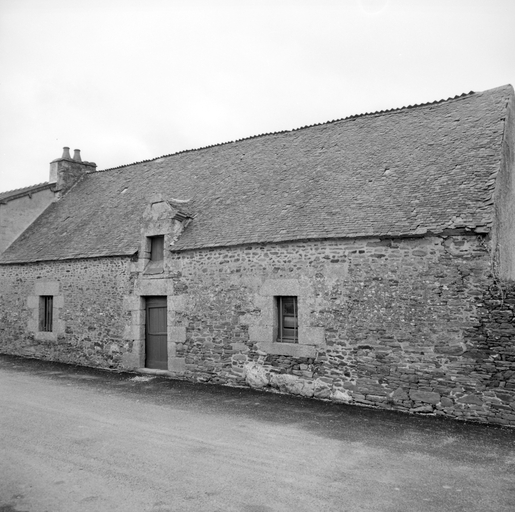 Bourg - Maison, parcelle 579 - Route de Josselin, vue d'ensemble de la façade est.Immatriculation