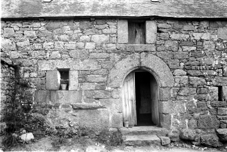 Burlaouen, ferme : détail de l'ancien logis daté 1647, escalier dans oeuvre en vis détruitImmatriculation