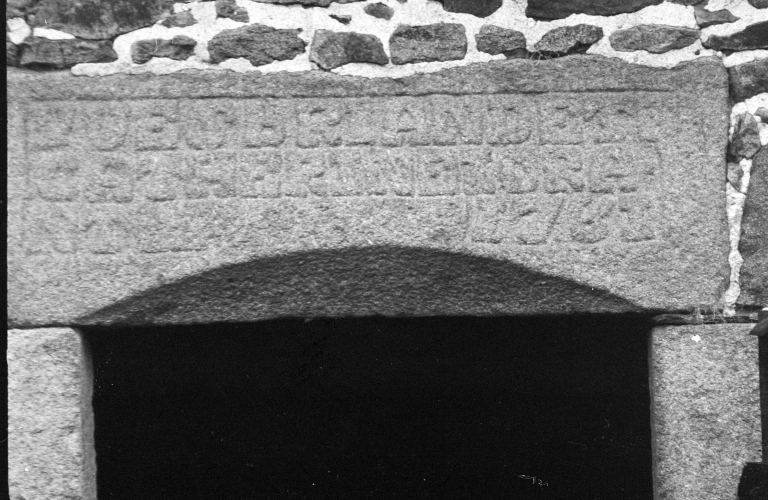 Pleumeur-Bodou, Parc-ar-Marec. Dépendance datée de l'année 1781, linteau (cliché A. Cherrier, pré-inventaire, 1967)Immatriculation