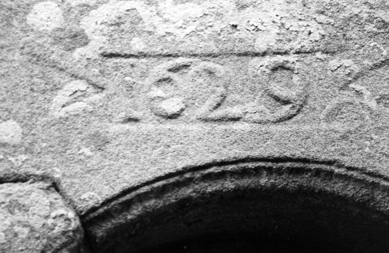 Dépendance, façade postérieure, porte datée de l'année 1629 (cliché A. Cherrier, pré-inventaire, 1967)Immatriculation