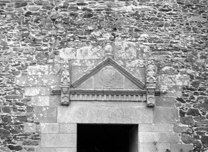 Détail façade sud, fronton-pignon triangulaire de la porte d'entrée (cliché Michel Fougnet, 1967)Immatriculation
