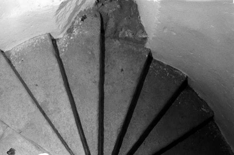 Escalier de distribution intérieur (cliché Alain Cherrier, pré-inventaire, 1967)Immatriculation