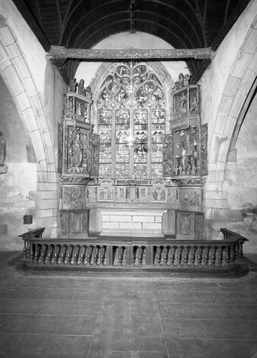 Maître-autel et ses statues : La Vierge ; La Trinité, chapelle du Notre-Dame-du-Crann (Spézet),