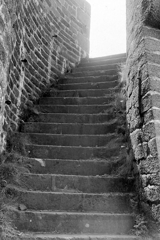 Vue de la batterie de Cornouaille en 1967 : extrémité est, escalier d'accès à la batterie de ruptureImmatriculation