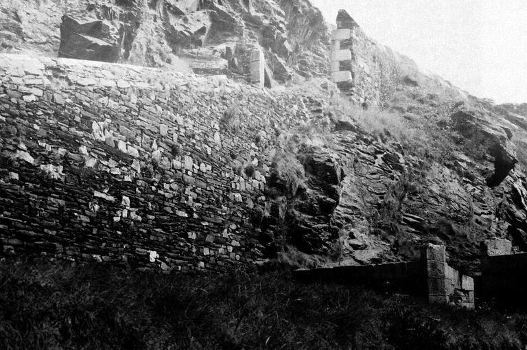 Vue de la batterie de Cornouaille en 1967 : mur de soutènement de la rampe d'accèsImmatriculation