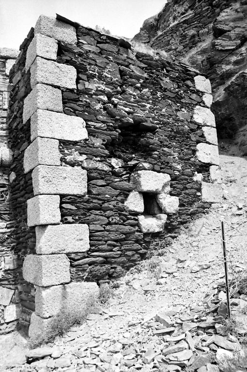 Vue de la batterie de Cornouaille en 1967 : extrémité ouest, latrines, chaînes harpées en pierres de taille de graniteImmatriculation