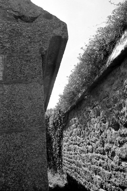 Vue du fort de la Fraternité en 1967 : corniche en granite du magasin à poudreImmatriculation