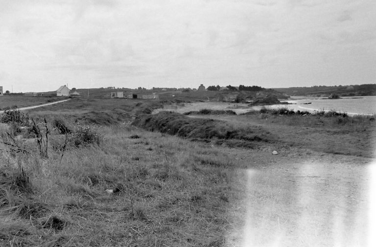 Champ de bataille : l'anse et la plage de Trez-Rouz en 1967. Vue des retranchements pris parallèlement à la côte. En arrière plan sur la plage : le rocher dit de la Mort AnglaiseImmatriculation