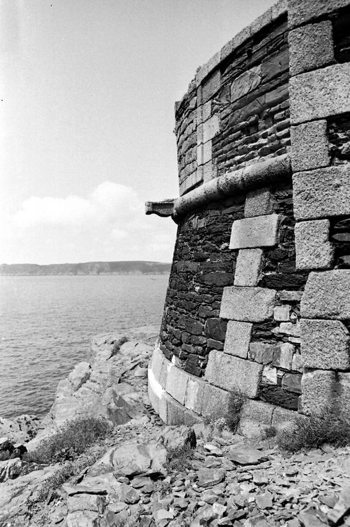Vue de la batterie de Cornouaille en 1967 : extrémité ouest, escarpe, chaînes harpées en pierres de taille de graniteImmatriculation