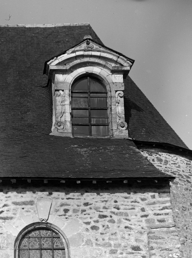 Lucarne sud-est, vue de détail.Immatriculation