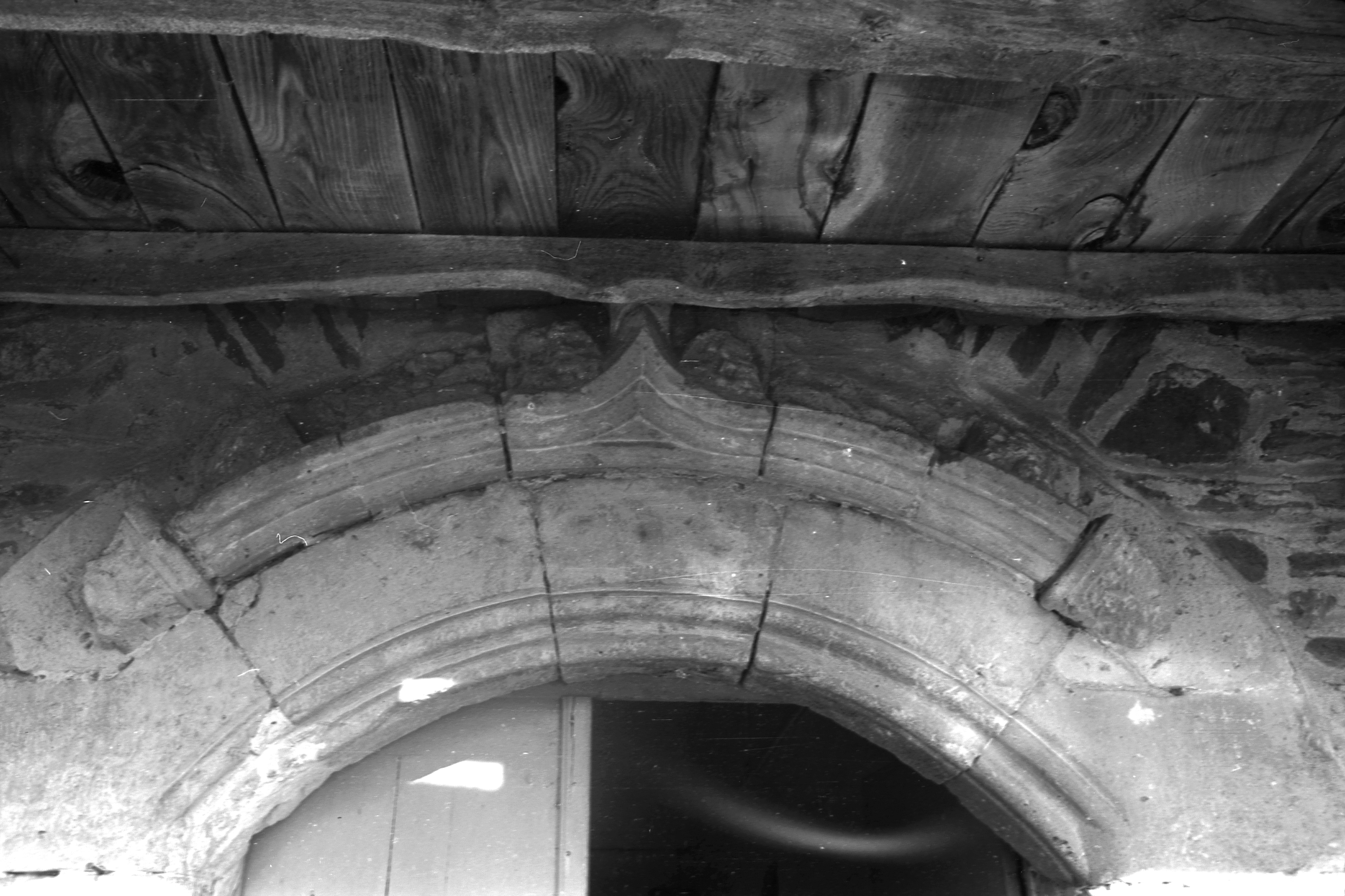 Bâtiment au nord de la cour, façade sud, détail de linteau de la porte sud (Etat en 1967)Immatriculation
