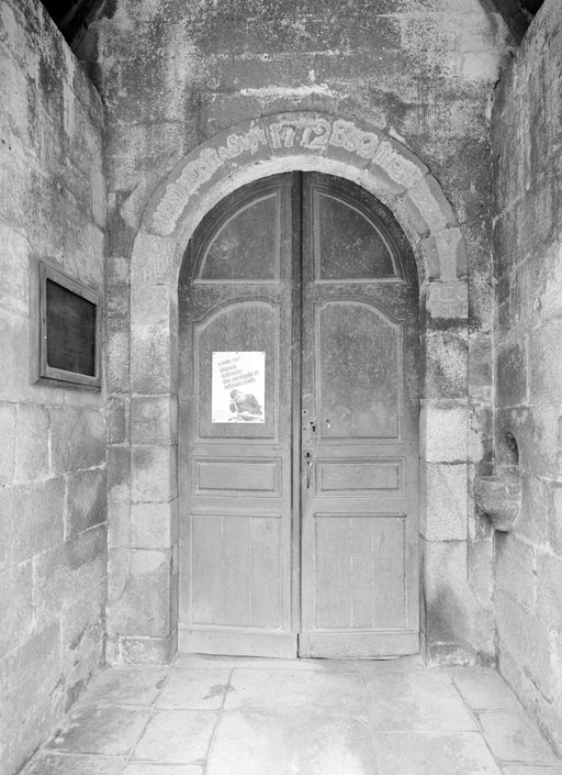 Intérieur du porche, porte avec inscription, état en 1967Immatriculation