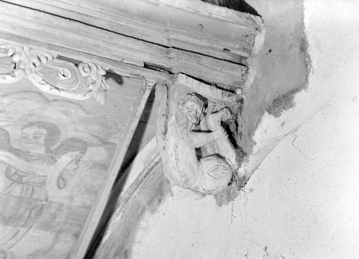 Côté ouest, cul-de-lampe sous le surplomb de l galerie à l'extrême sudImmatriculation