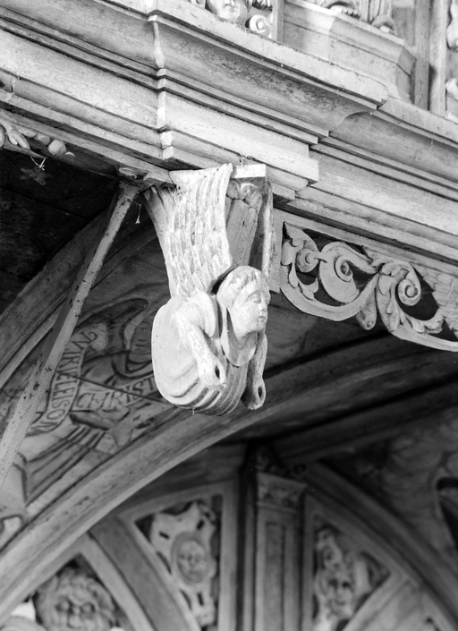 Côté est, cul-de-lampe historié sous le surplomb de la galerie au sud de la porteImmatriculation