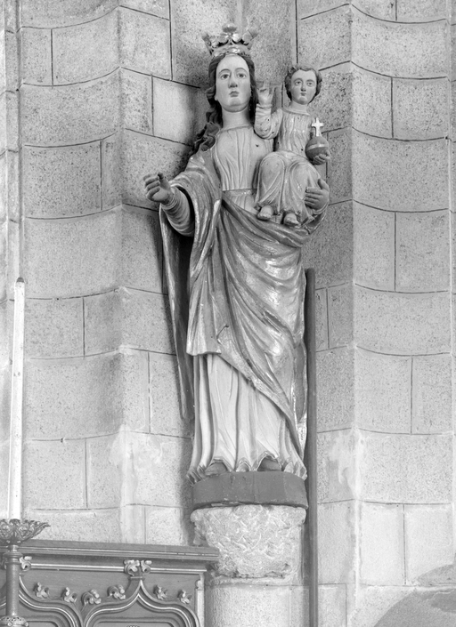 Statue (grandeur nature) : Vierge à l'Enfant (1), chapelle Sainte-Barbe (Le Faouët),