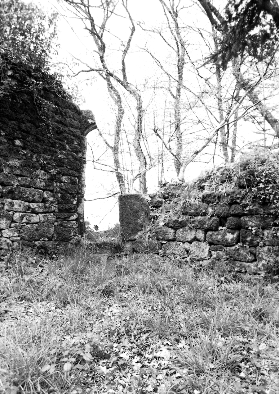Ruines de l'ancien château - Débris de porte sur le mur estImmatriculation