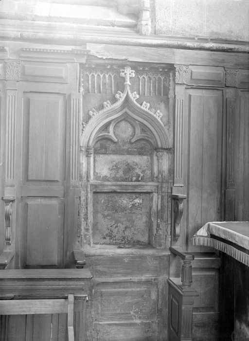 Crédence angle nord-est, bas-côté nord du choeur.Immatriculation