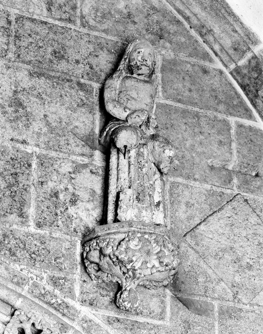 Porche sud de la nef, statue de femme.Immatriculation