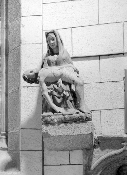 Groupe sculpté (d'applique) : Vierge de Pitié, église Saint-Jean-Baptiste (Le Croisty),