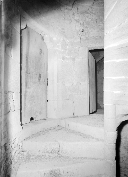 Escalier à vis, portes d'accès aux pièces de l'étage en 1967Immatriculation