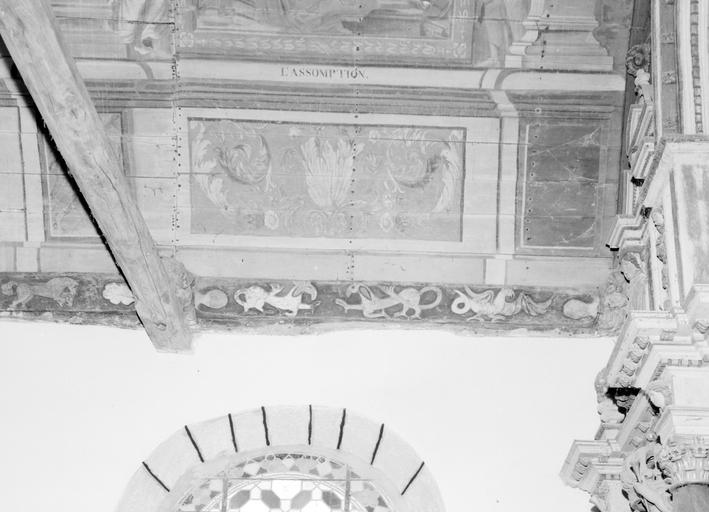 Mur nord de la nef, 2 ânes apportés et un coq multicoloreImmatriculation