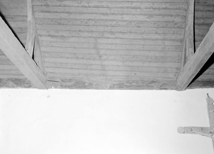 Ecusson central de la sablière, mur nord de la nefImmatriculation