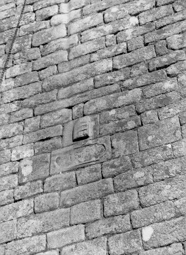 Façade ouest : écusson et dateImmatriculation