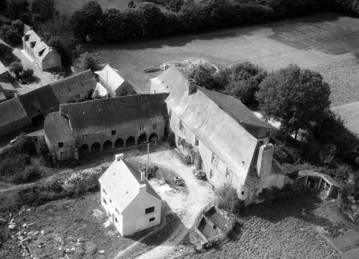 Vue aérienne des communs et du manoir, vue sud-estImmatriculation