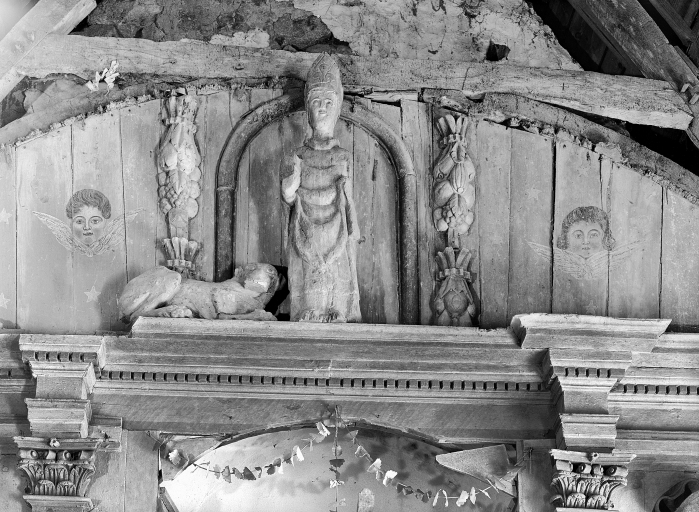 Groupe sculpté : Saint Hervé et le loup,