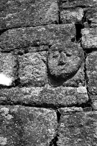 Extrémité nord de la façade ouest : détail de la pierre sculptéeImmatriculation