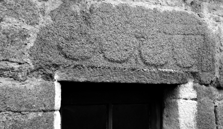 Saint-Levenec, maison, façade sud : détail du linteau de la porte ouestImmatriculation