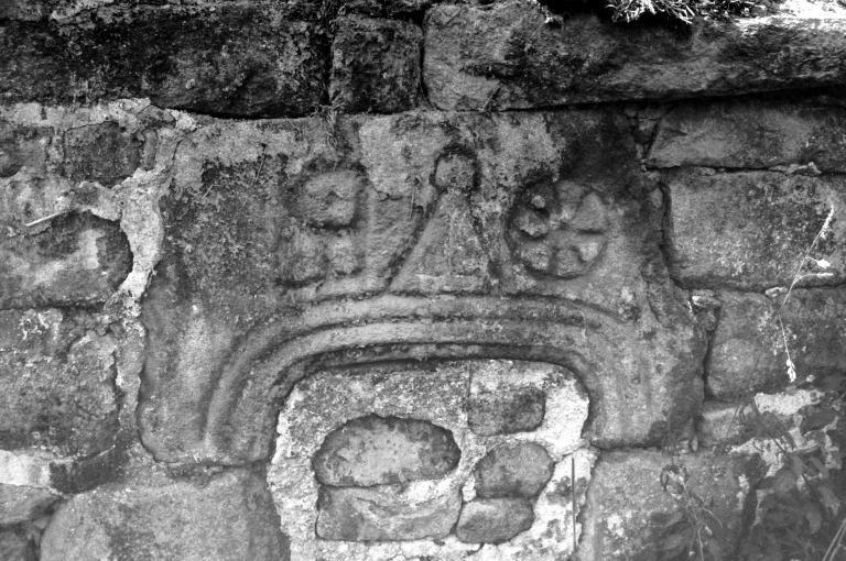 Maison au bourg (6, parcelle 1022) : façade nord, fenêtre, détail du linteau sculptéImmatriculation