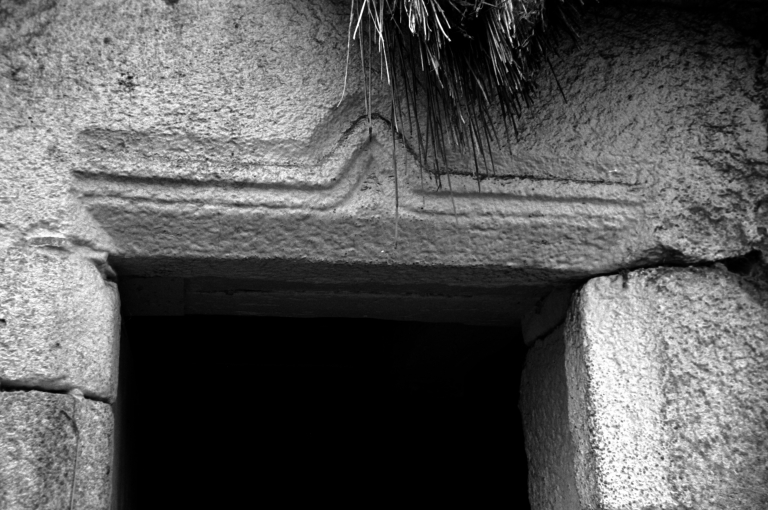 Restavy, maison : façade nord, détail d'un linteau de porteImmatriculation