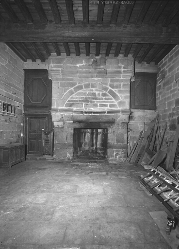 Rez-d-echaussée, grande salle (est) : vue générale de la cheminéeImmatriculation
