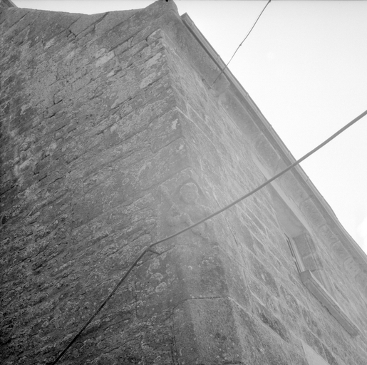 Ancien manoir de Sainte-Christine, détail de la pierre historiée à l'angle nord-ouest du logis, état en 1967Immatriculation