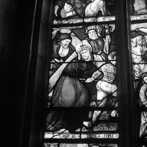 Vitrail de la Passion, dans le bras sud du transept : panneau 4, le Portement de croixImmatriculation