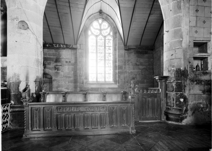 Stalles (2), prie-Dieu (2), style néo-gothique,