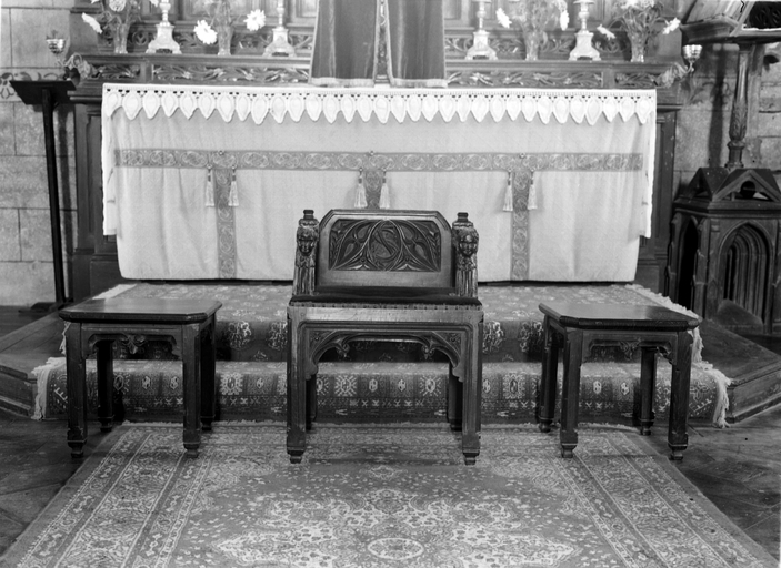 Fauteuil du prêtre et tabourets : vue généraleImmatriculation
