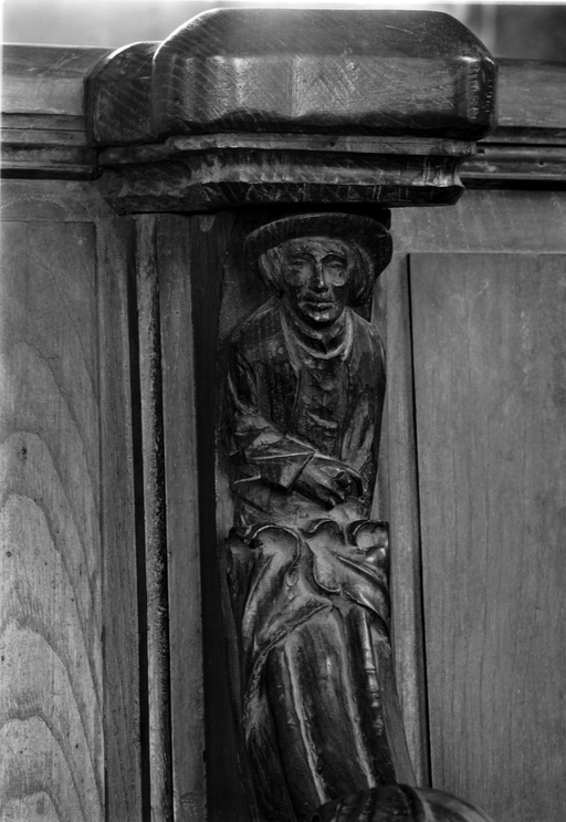 Stalles nord, détail : personnage sculpté sur un accoudoirImmatriculation