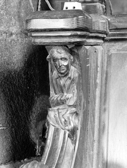 Stalles nord, détail : personnage sculpté sur un accoudoirImmatriculation