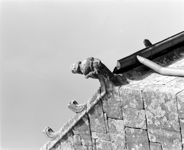 Porche, face sud : pierre d'assise du rampant estImmatriculation